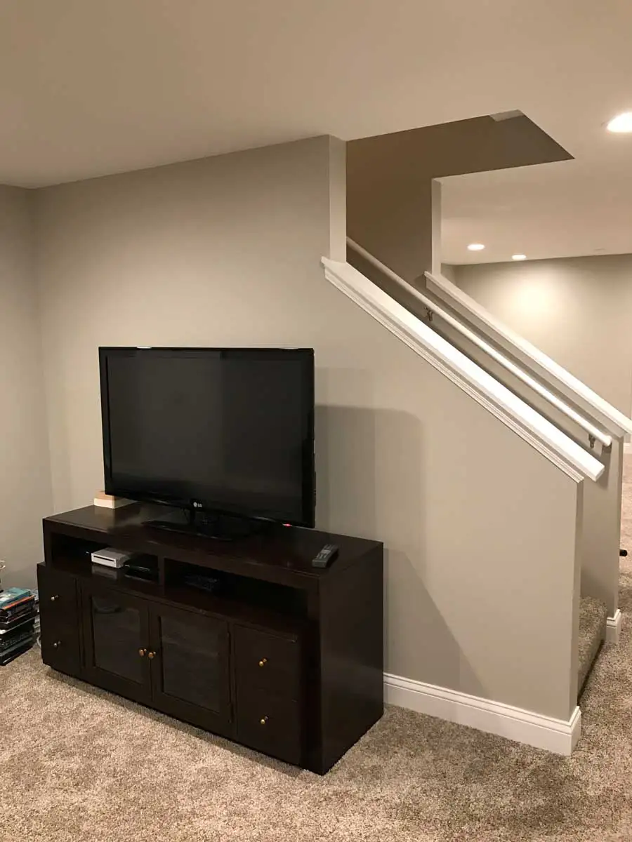 We transformed a completely unfinished space into a functional living area featuring a kitchenette, full bathroom, bedroom, and TV area.