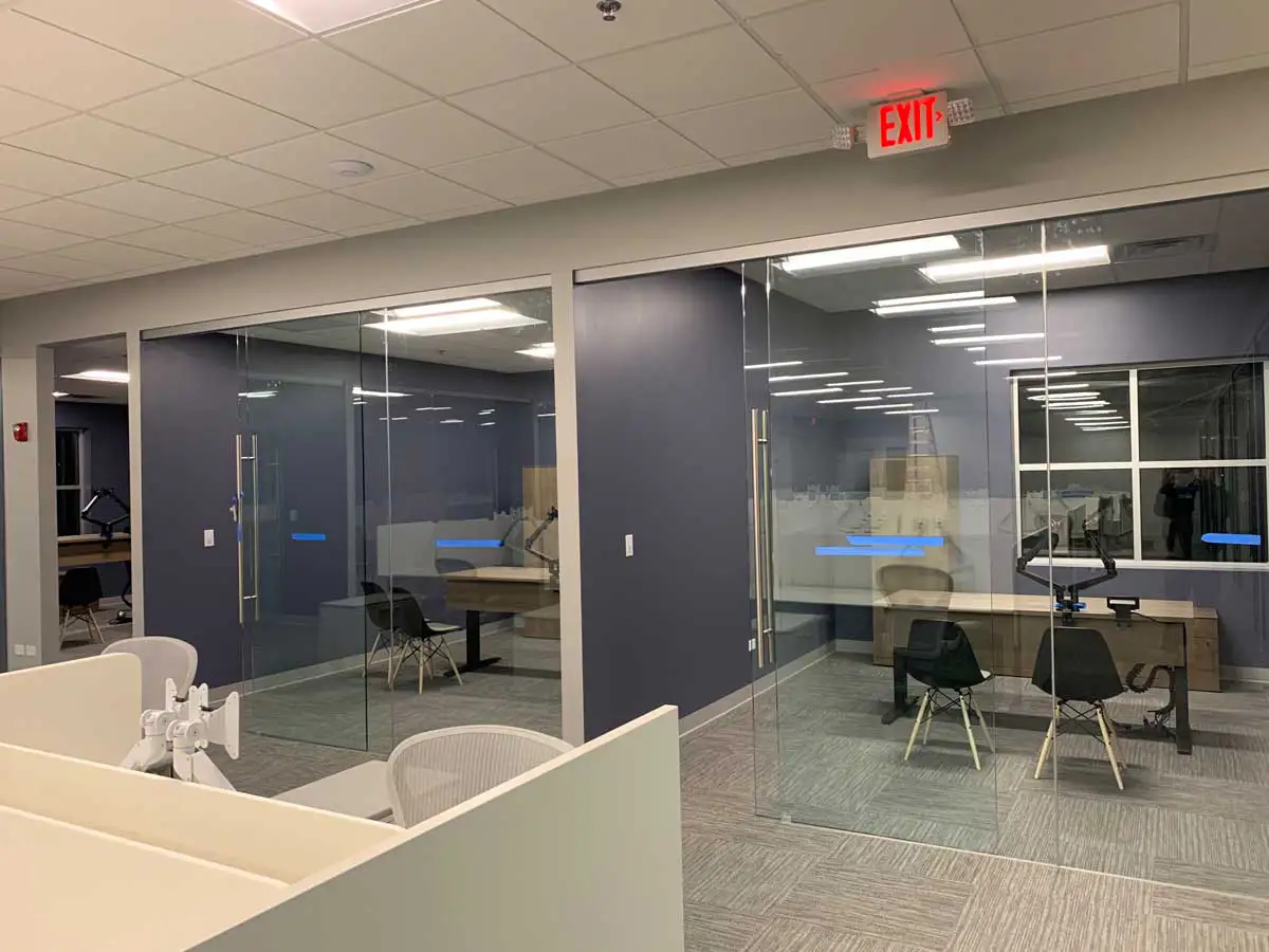 We transformed an empty warehouse into a fully functional workspace, constructing multiple glass-front offices, bathrooms, conference rooms, and a lunchroom.