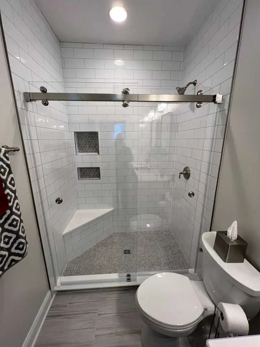 We gutted the bathroom down to the studs and completed a full renovation, including a new low-threshold subway tile shower, new flooring, fresh paint, and a modern vanity.